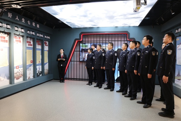 廉政教育环节,全体司法警察来到院廉政教育清风馆,庄重肃穆的氛围扑面而来。在讲解员的引导下,司法警察依次参观了“函关古韵 廉史镜鉴”“守正初心 灵法先行”“利剑出鞘 谨守关口”“守廉前行 任重道远”四个主题板块,开启了一场意义非凡的廉政文化教育之旅。
